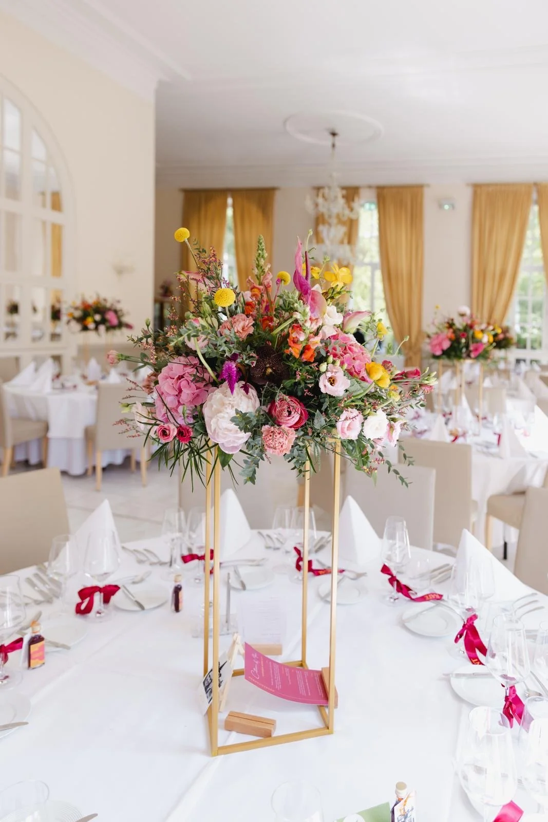 Reception florals (tablescapes, bars, lounges, photo backdrops)